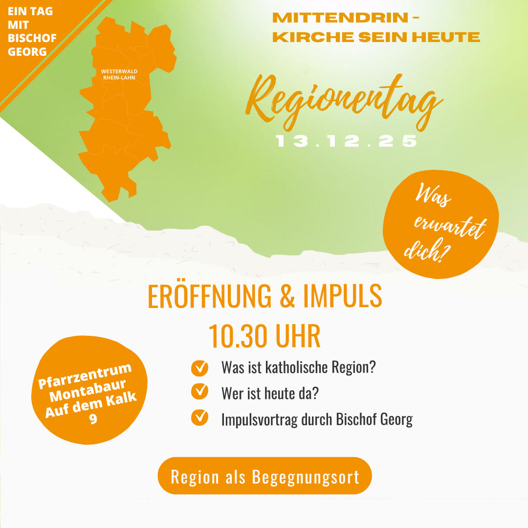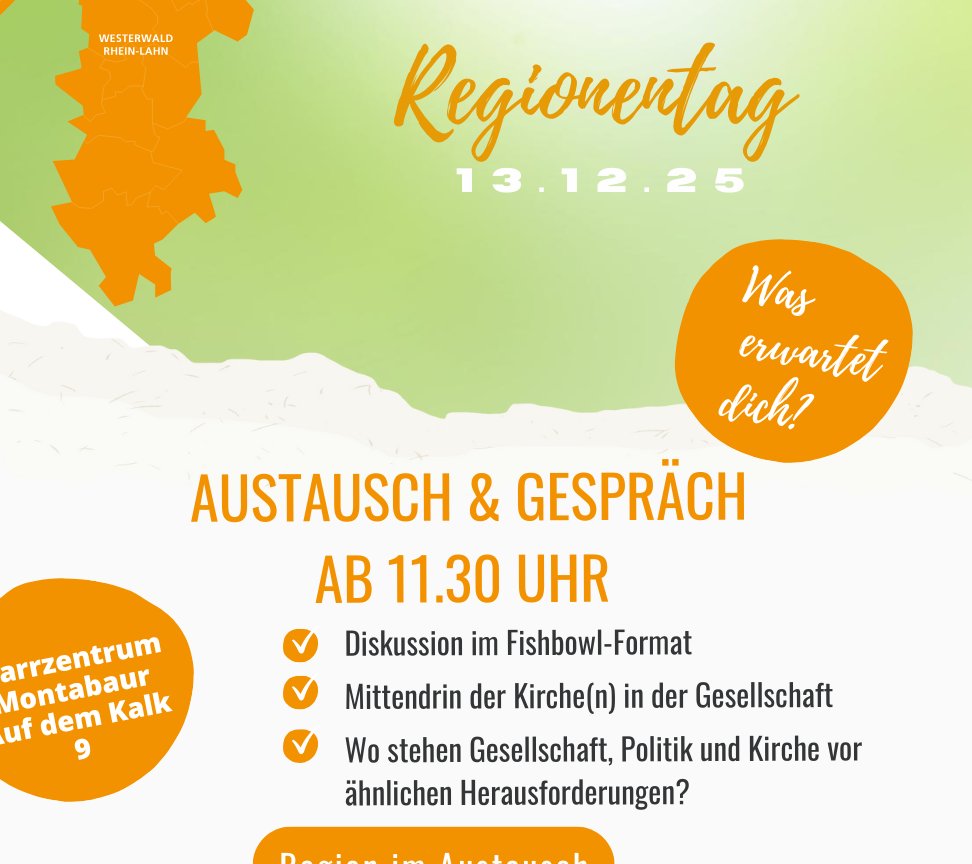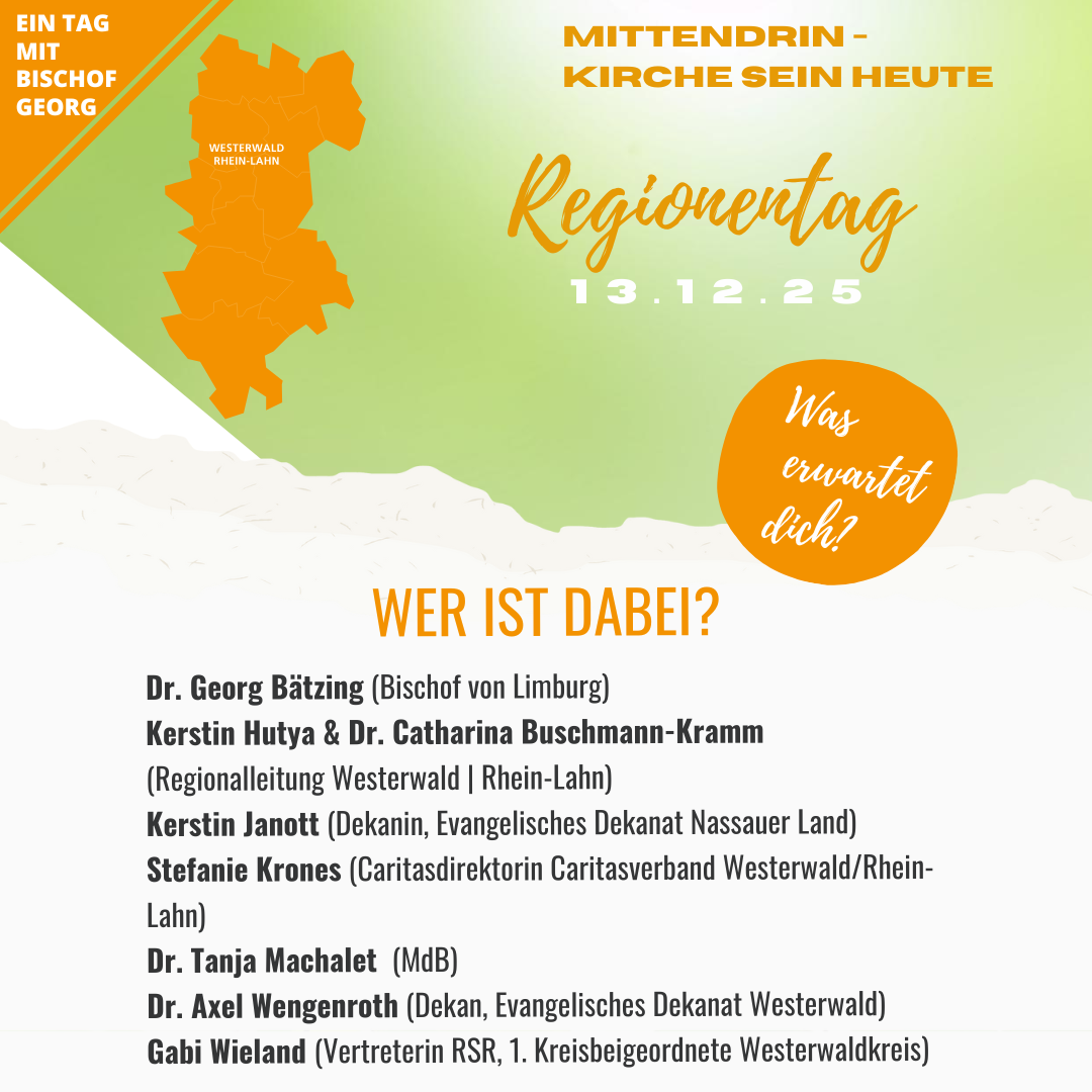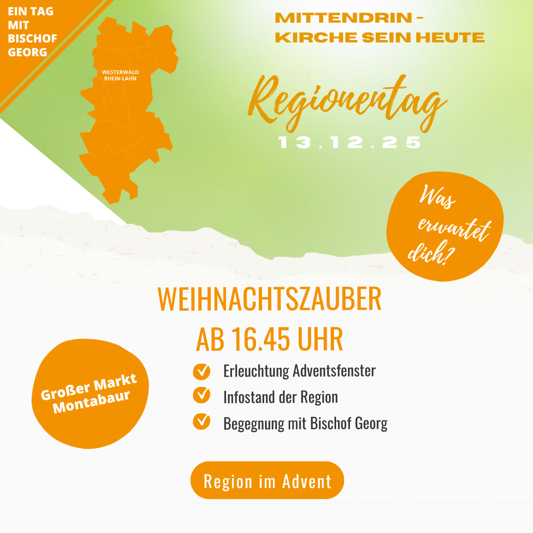 „Mittendrin – Kirche sein heute!“ – unter diesem Leitwort steht der Regionentag der Katholischen Region Westerwald | Rhein-Lahn am 13. Dezember 2025. Anmeldungen ab jetzt möglich!