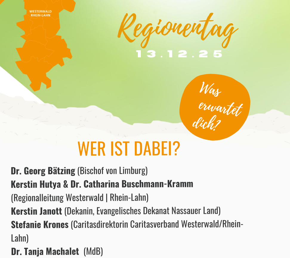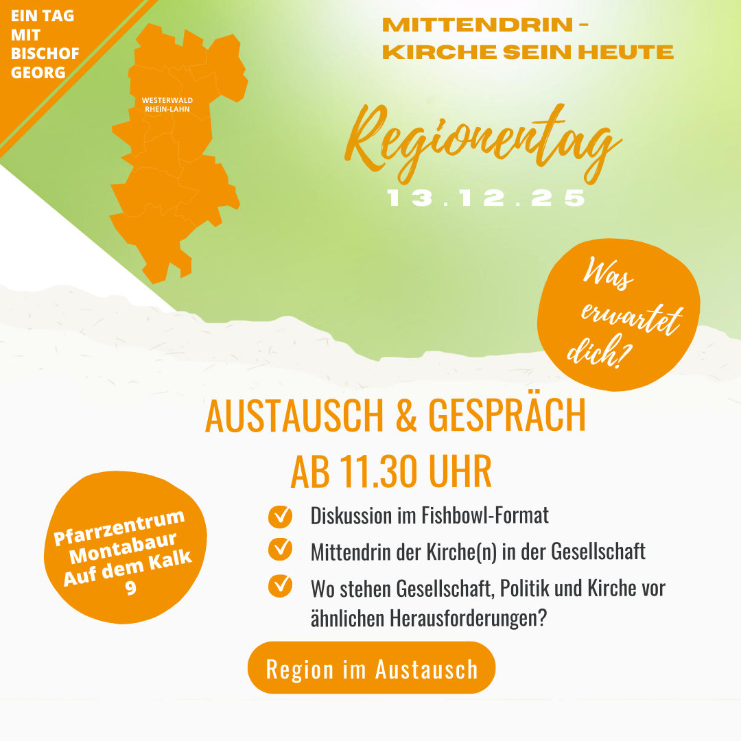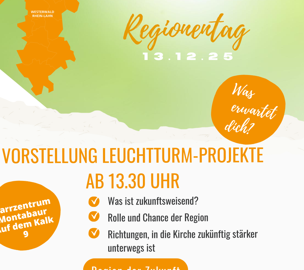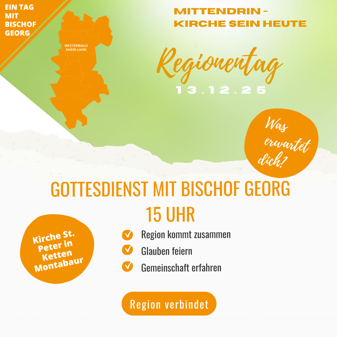 „Mittendrin – Kirche sein heute!“ – unter diesem Leitwort steht der Regionentag der Katholischen Region Westerwald | Rhein-Lahn am 13. Dezember 2025. Anmeldungen ab jetzt möglich!